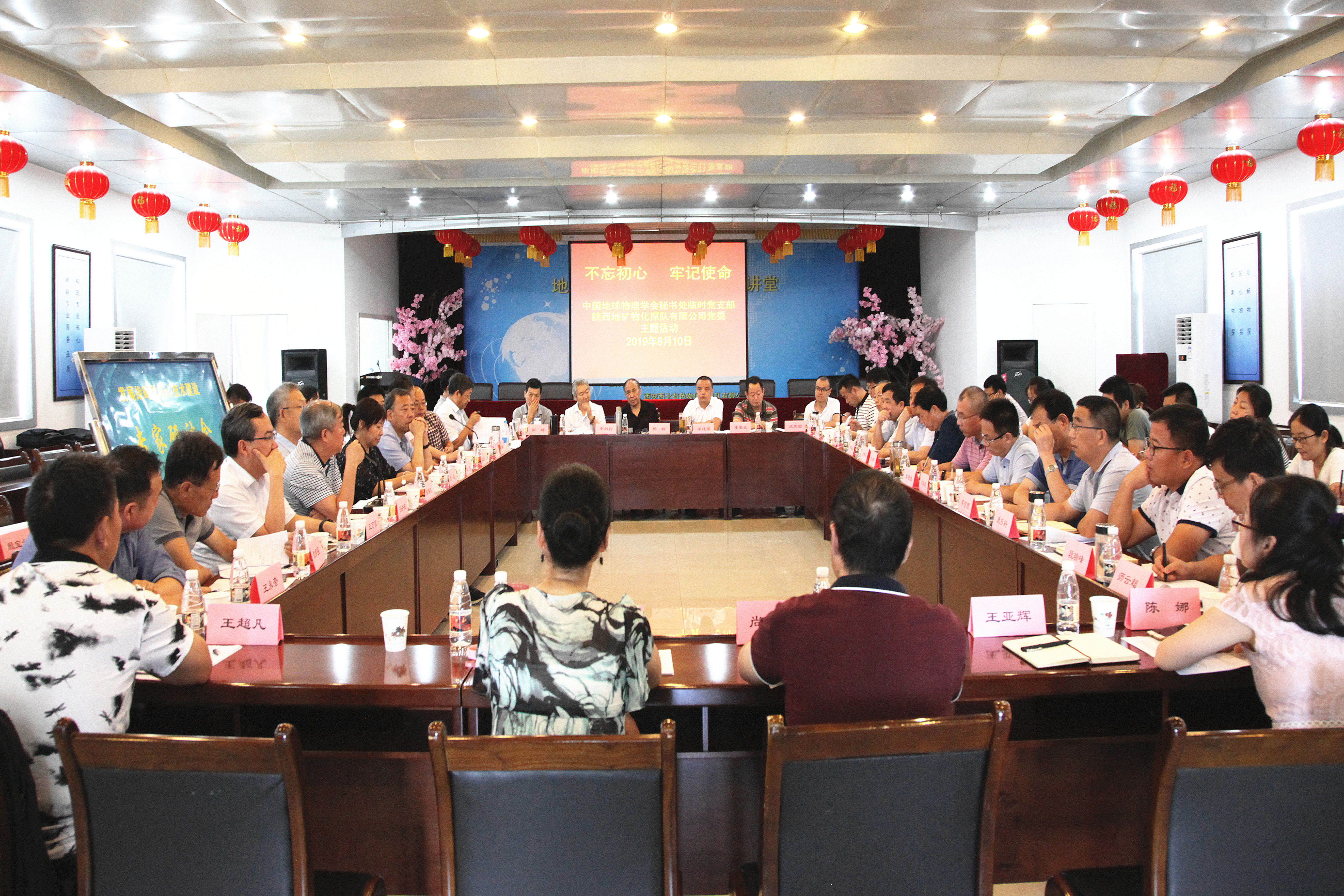 ? ? 2019年中國地球物理學(xué)會“地球物理科技推廣專家大講堂”會議期間,一場由中國地球物理學(xué)會臨時黨支部、陜西地礦物化探隊有限公司黨委共同舉辦的“不忘初心,牢記使命”主題黨日活動, 8月10日在西安舉行。