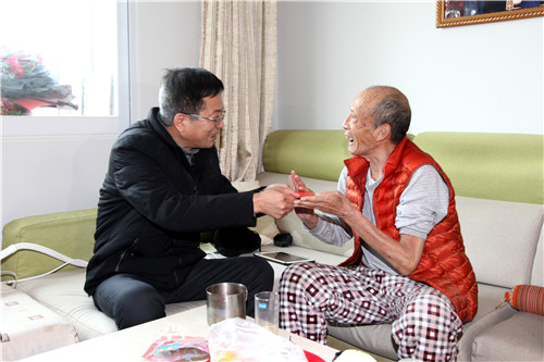 ? ? 安增會來到劉愛民家中,與老人親切交談,仔細(xì)詢問老人的身體狀況,祝愿他早日康復(fù),并為老人送去了慰問金和慰問品,送去了組織的關(guān)懷和溫暖,送去了新年的祝福,祝福老人過一個歡樂祥和的春節(jié)。