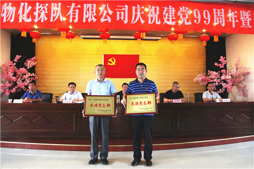 ??? 7月1日上午,物化探隊有限公司黨委召開慶祝中國共產(chǎn)黨建黨99周年大會,公司領(lǐng)導(dǎo)班子成員、在機關(guān)的全體黨員干部職工,受表彰的“先進黨支部”、“優(yōu)秀共產(chǎn)黨員”、“優(yōu)秀黨務(wù)工作者”60余人參加,部分野外生產(chǎn)黨支部以視頻會議形式參加了大會。會議由公司黨委委員、副總經(jīng)理余常忠主持。