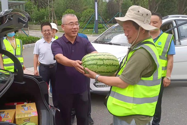 ??? 李新勝一行為一線職工送去了西瓜、飲料等夏季防暑降溫物品,同時鼓勵大家繼續(xù)發(fā)揚不怕苦、不怕累、攻堅克難的地質(zhì)精神,為公司的發(fā)展貢獻(xiàn)力量。?