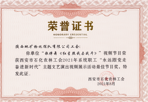 物化探隊工會“永遠跟黨走 奮進新時代”主題文藝表演視頻活動獲獎喜報