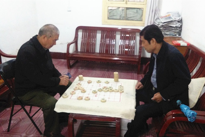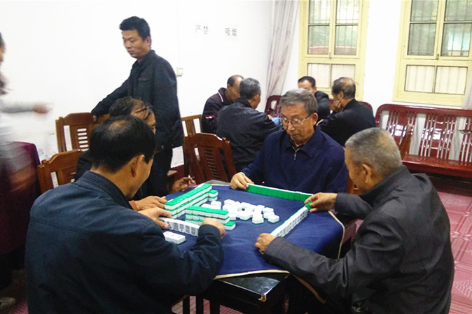 ??? 老人們有說有笑地來到活動室,參加麻將、撲克、象棋等競技活動。他們自愿組合分成比賽小組,圍坐在一起互相切磋,都很認真,每走一步棋、每發一張牌,都小心又謹慎,比賽現場氣氛熱烈而融洽,呈現出一派歡樂祥和的景象。
