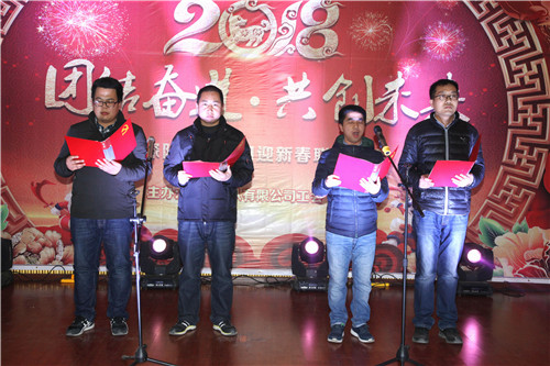 ? ? 隊(duì)黨委書記、執(zhí)行董事、總經(jīng)理王新坪發(fā)表了新年致辭,首先向全體職工及支持物化探隊(duì)發(fā)展的家屬、各界朋友致以新年的問候。他回顧了2017年物化探隊(duì)取得的成績,指出在2018年面臨的新挑戰(zhàn),并勉勵全體職工圍繞“大地質(zhì)、大物探、大服務(wù)”的發(fā)展戰(zhàn)略,不忘初心、牢記使命、勇往直前,全面貫徹“物化探+”發(fā)展理念,發(fā)揚(yáng)“崇隊(duì)敬業(yè)、創(chuàng)新發(fā)展”為核心的企業(yè)文化,鍛造“真誠如歌天地遠(yuǎn),山高萬仞人為峰”的企業(yè)精神。