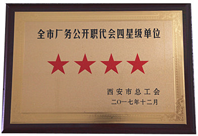 ? ? 2017年12月,我隊工會在石化農(nóng)林工會擇優(yōu)推薦和西安市總工會檢查驗收的基礎(chǔ)上,被西安市總工會授予“西安市廠務(wù)公開職代會四星級單位”稱號。